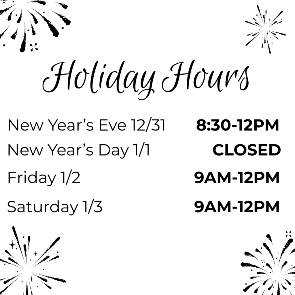 Call during our office hours to book an appointment or find out more about our services! We are open M-F 8:30AM-6PM, and Saturday from 8:30-1PM